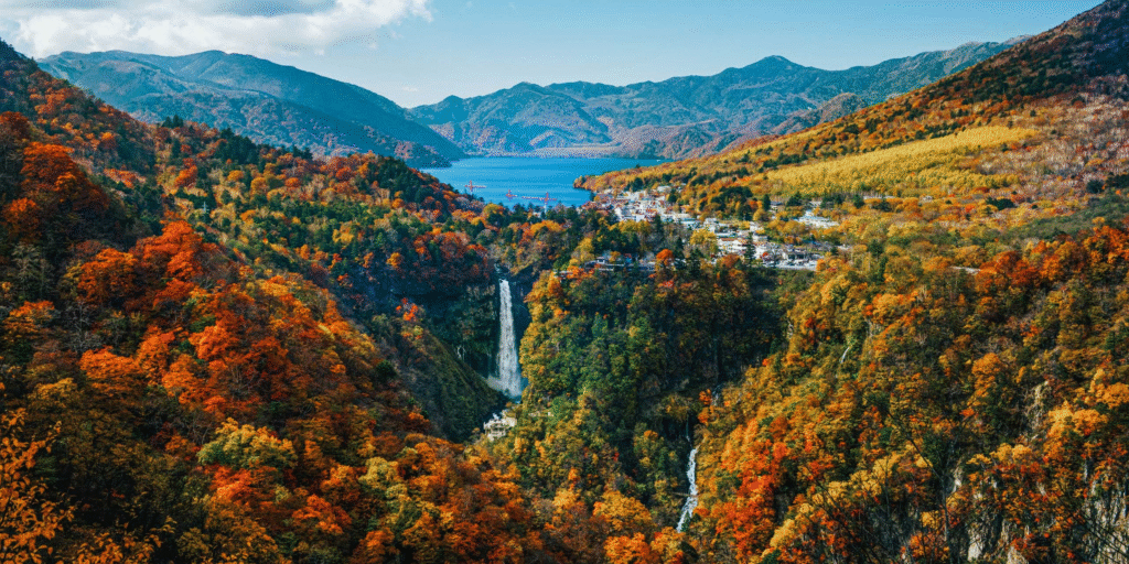 Located two hours from Tokyo, Nikko combines stunning fall colors with UNESCO World Heritage shrines. By mid to late October, the forests around Lake Chuzenji and Kegon Falls light up in fiery hues.
